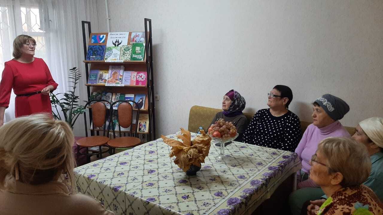 В Татарской библиотеке, в рамках Декады пожилых, был проведен вечер отдыха. Участники литературно-творческого клуба «Ядкарь» принимали поздравления с праздником. Играя в игру «Угадай мелодию», они вспомнили песни молодости. Свои стихи прочитали Фания Фаррахова, Венера Миназова, Гульсум Фардеева. Вечер продолжился за чайным столом веселой беседой и играми.