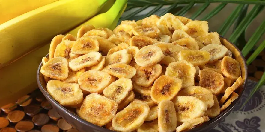 Свежий банан — не очень жирный, но весьма питательный и энергетически ценный продукт. Сушёный продукт впятеро калорийнее сырого. Фрукт помогает утолить внезапно разыгравшийся голод.
