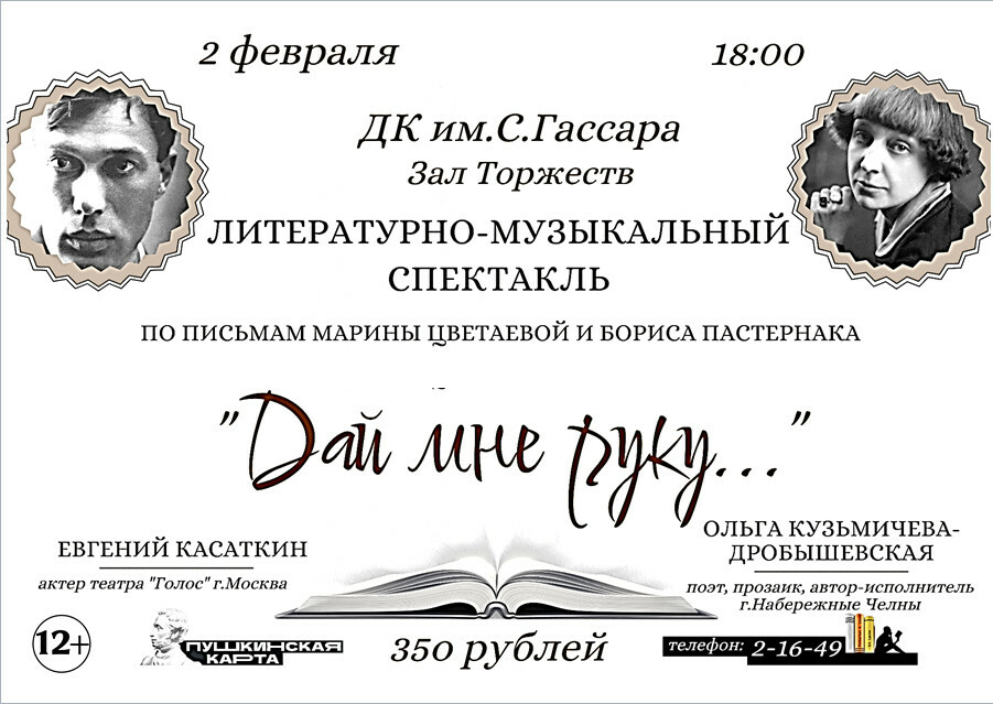 Поэт, член Союза российских писателей и Союза писателей Республики Татарстан, автор-исполнитель Ольга Кузьмичева-Дробышевская и актер московского театра «Голос» Евгений Касаткин в литературно-музыкальном спектакле воссоздадут неповторимую атмосферу этих писем, атмосферу истинной любви, подлинного родства и содружества душ.
