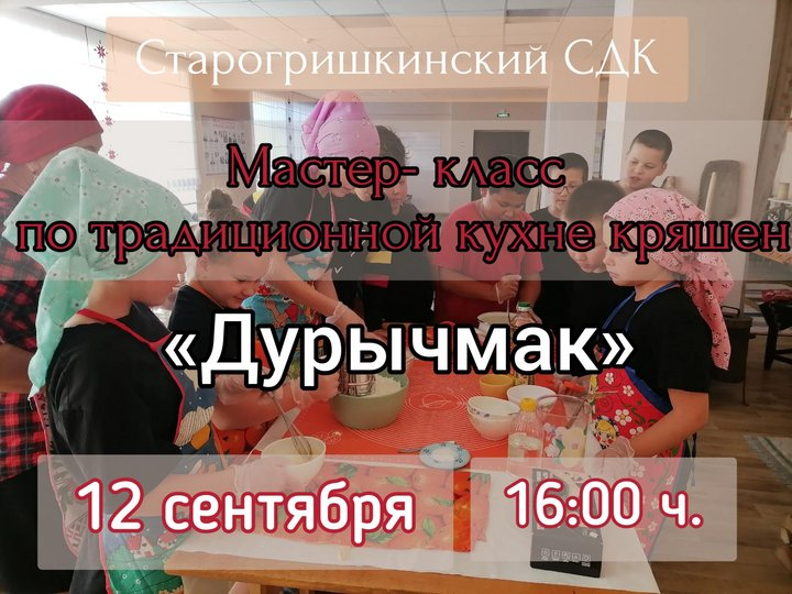 12 сентября состоится мастер-класс по традиционной кухне кряшен. Дурычмак – традиционное блюдо кряшен. Дурычмак представляет собой выпечку. Дурычмак может быть как сладким, так и несладким. Традиционно дурычмак делают в виде четырехугольника, в виде начинки обычно используют картошку или творог. Дурычмак можно приготовить как из дрожжевого, так и из пресного теста.