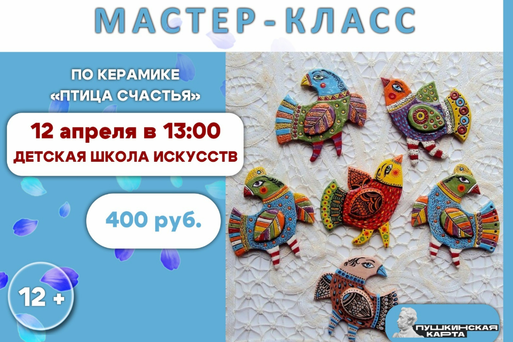 В ДШИ пройдет мастер — класс по керамике «Птица — Счастья». Мероприятие проведут преподаватели художественного отделения Фадеева О.А. и Сувернева Н.М. Сначала учителя познакомят детей с приемами лепки объемной фигуры и способами ее декорирования. Обучающиеся сами придумывают свой образ птицы. Дети могут проявить свою творческую фантазию и декоративными элементами украсить птицу. В дальнейшем после высыхания фигурки, ее обожгут в муфельной печи. Останется только красочно расписать изделие акриловыми, гуашевыми красками. Желающие могут прийти и научиться поэтапно лепить образ декоративной птицы. Надеемся что это занятие принесет большое удовольствие всем участникам.